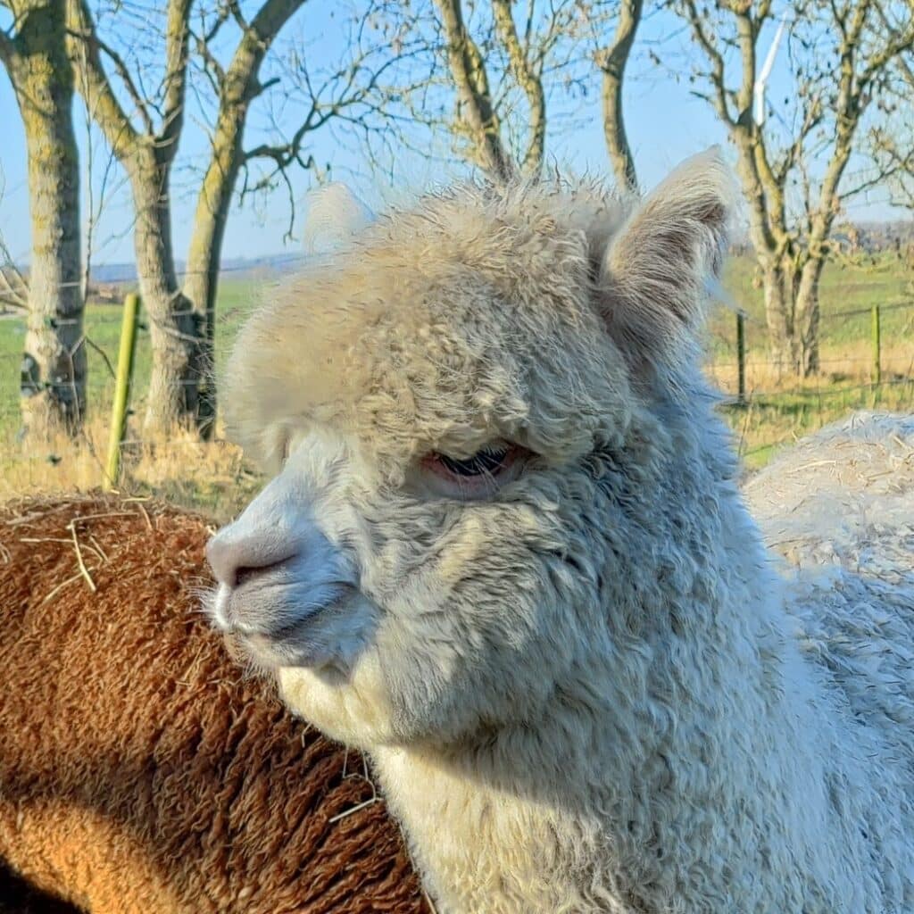 Maja er født i 2015 hos Ebeltoft Lama. Hun flyttede til os i slutningen af 2024.