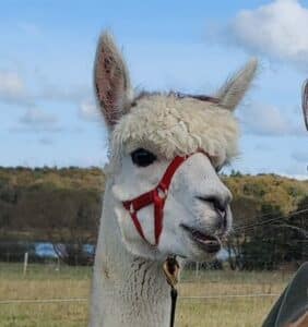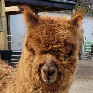 Sofie er født Sverige i 2009. Hun har i mange år været ansat som gåturs-lama hos Ebeltoft lama og flyttede til os i slutningen af 2024.Sofie er den største af vores lamaer og hun elsker at gå på tur.