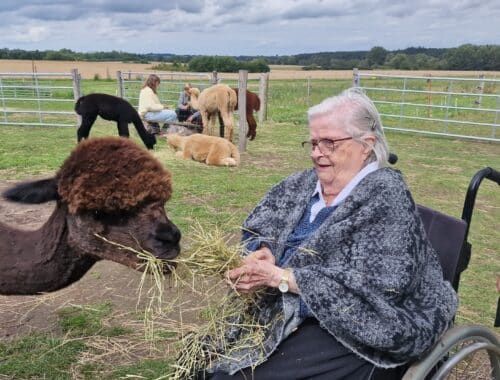 Det er muligt at besøge alpacaerne med gangstativ, kørestol og scooter. I meget våde perioder kan det dog være vanskeligt at køre på foldene med (tung) elektrisk kørestol eller scooter. I det tilfælde hvor du ikke kan komme ud på folden til alpacaerne, kan alpacaerne heldigvis komme til dig i stedet. Skriv gerne i kommentarfeltet, hvilket hjælpemiddel du medbringer, så vi – afhængigt af vejrforholdene – kan forberede dit besøg bedst muligt.